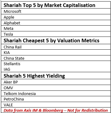 Irrespective of your belief system, the Shariah 500 identifies Companies which adhere to high standards of fiscal discipline, leverage and operational principles. As a result the listing can be a useful guide for low and moderate risk investors, as the constituents tend to have a far lower probability of default.