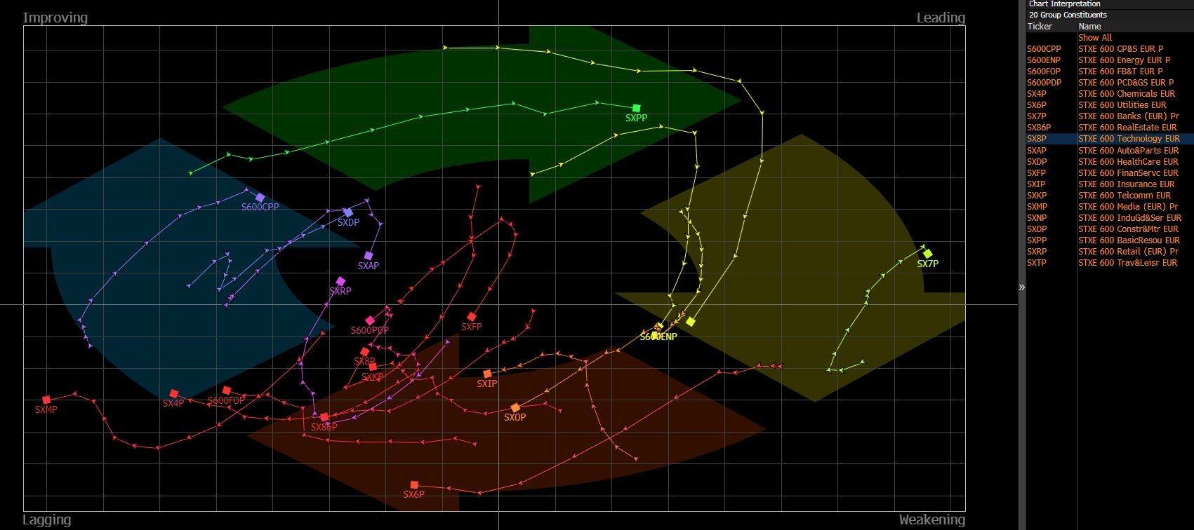 Quite a cluster of Sectors in the EU that are losing momentum. It appears that there will need to be a meaningful catalyst for the overall Index to appreciate much further from here, in order to offset the broadening softness across several areas.